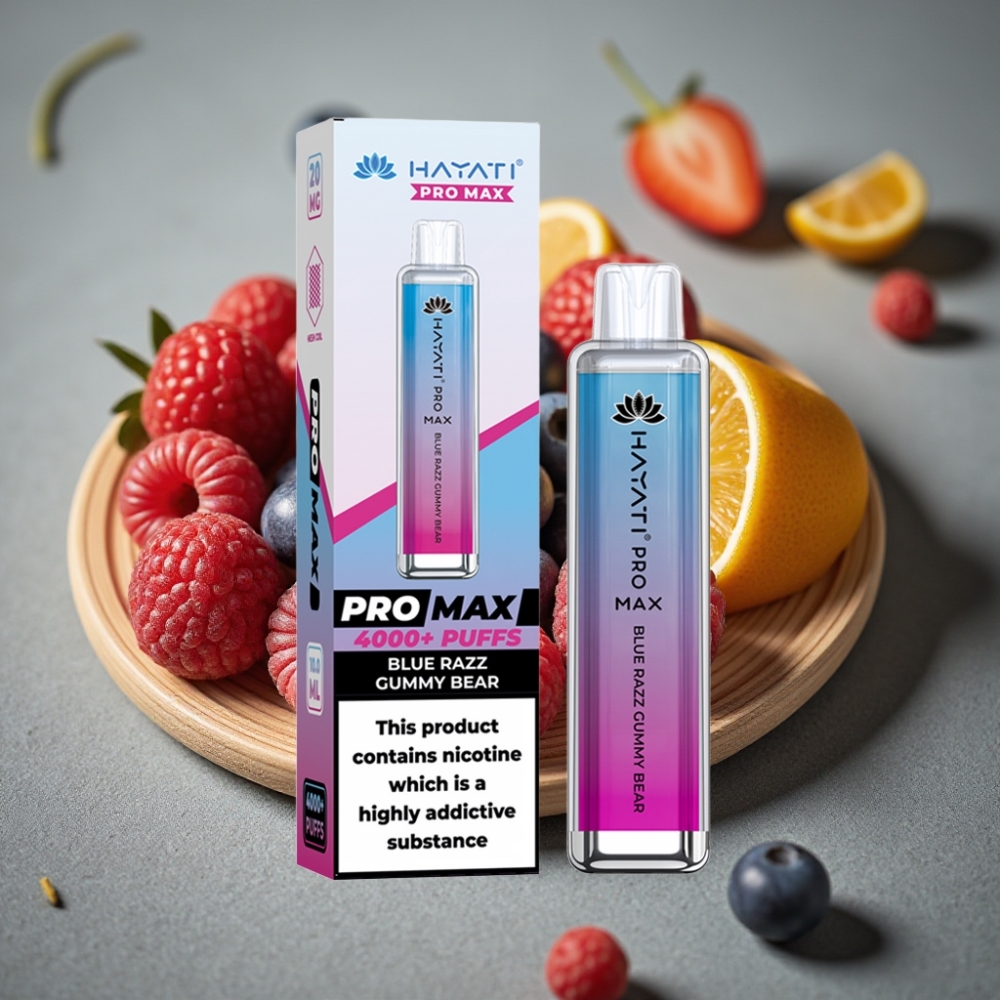 Hayati Pro Max 4000 Puffs Engångsvape Blå Hallon Tuggummi, 2ml/10ml, 1400mAh, 2%/5% Nikotin
