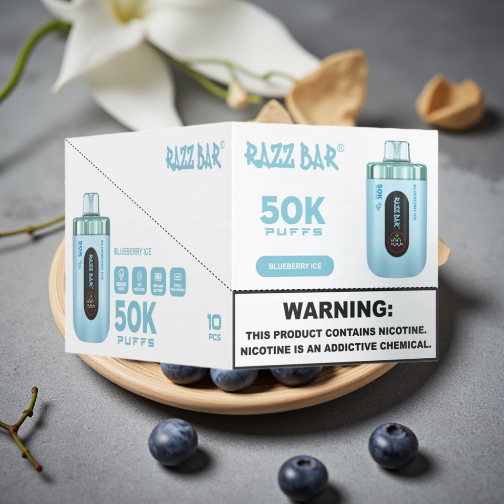 Razz Bar 50K Puffs Disposable Vape Blåbär Is, 50000 Puffar, 650 Mah, Typ-C